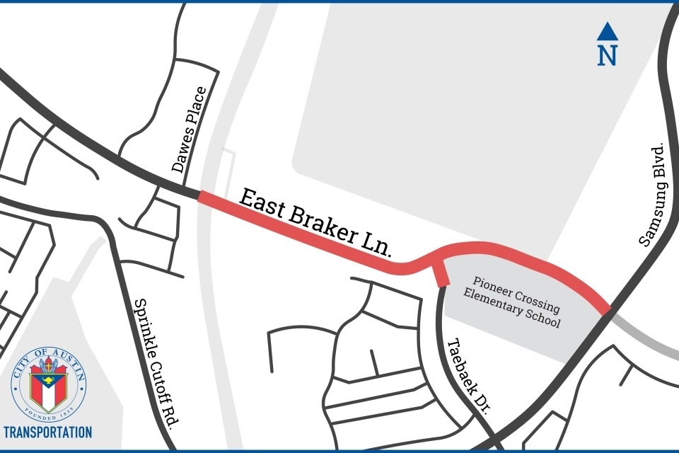 East Braker Lane will extend from its current endpoint at Dawes Place approximately 0.75 miles to Samsung Boulevard. Once complete, the project is expected to reduce congestion on East Parmer Lane and future Safe Routes to School improvements to Taebaek Drive. The project is in alignment with the Austin Strategic Mobility Plan, a comprehensive, citywide transportation plan adopted in 2019. Transportation and Public Works has plans for future Safe Routes to School improvements to Taebaek Drive.