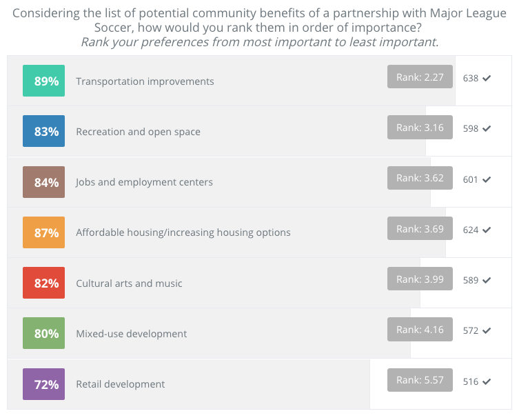 The end result was a clear voice of public support for the project, along with key investments expected from the team. Prioritize included things like workforce development, youth programs, and investments in transportation improvements. These items were then incorporated into negotiations with team owners.
