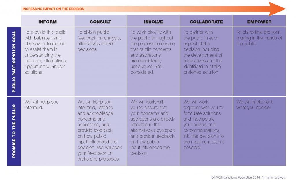 The IAP2 Spectrum of Public Participation