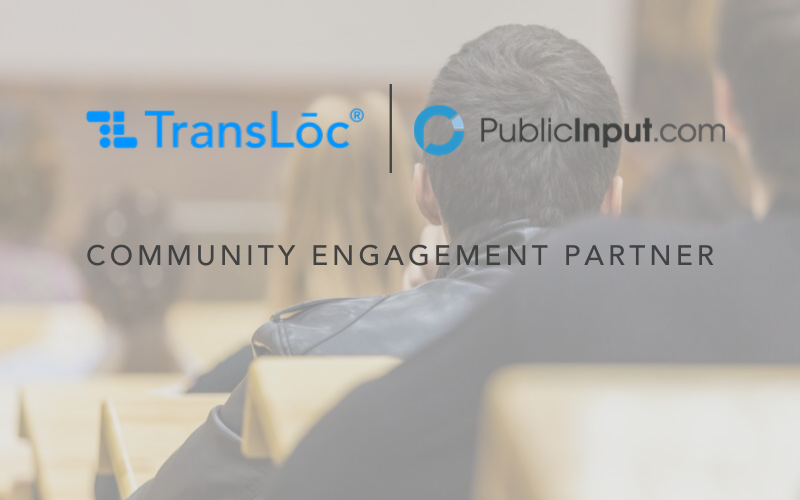 TransLoc and PublicInput.com will host a webinar on November 6, 2019 focused on community engagement best practices for transit agencies. Click here to register for the webinar and learn how you can connect with riders, improve transit services, and grow ridership through public involvement.