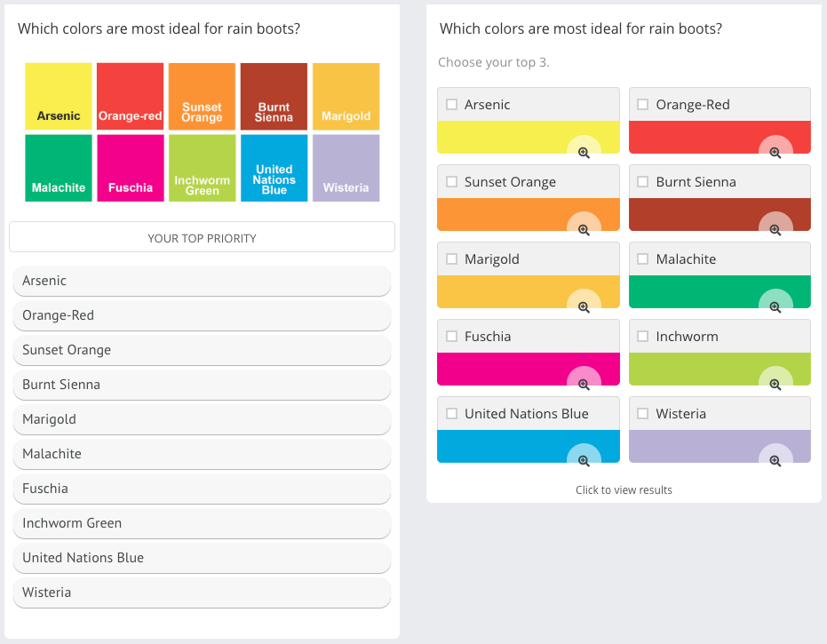 That’s why, if you’re trying to narrow down a list of options, ranking may not produce the simple data (options with the most votes) that you’re hoping for.