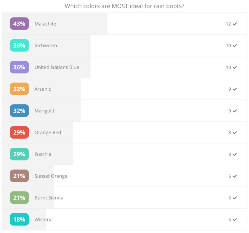 For example, if someone asked you, “Which colors are the BEST for rain boots?”
