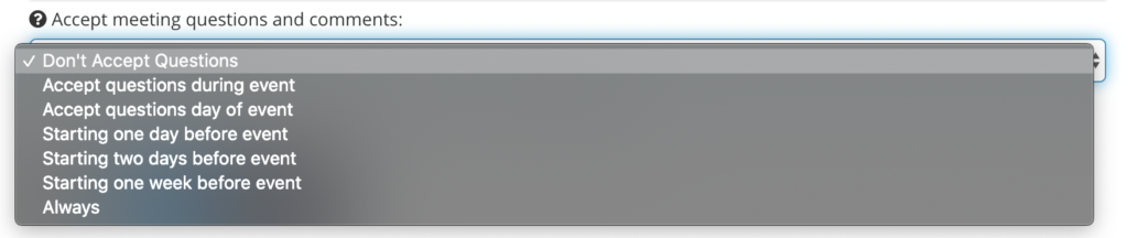 If you’re accepting questions, consider whether people can submit them prior to the meeting. PublicInput.com’s Meeting Mode allows you to accept questions any time before or during your virtual meeting.