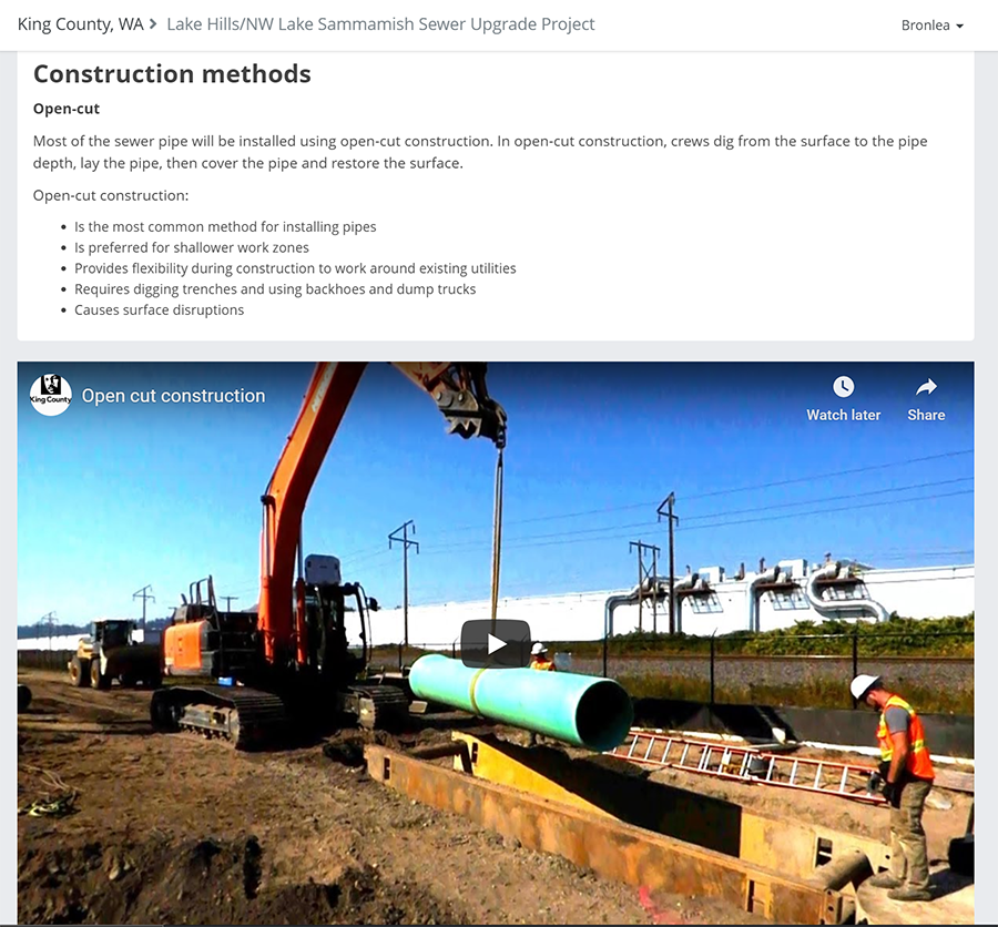 You can also create a survey project or project group (topic page), where you can present additional images and information to your meeting attendees. You can embed videos, photos, provide an opportunity for comments, and ask people to answer questions. All of these engagement opportunities allow you to keep your residents up-to-date during and after the event.