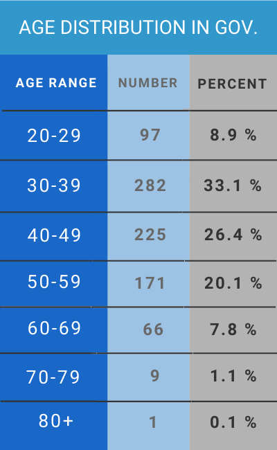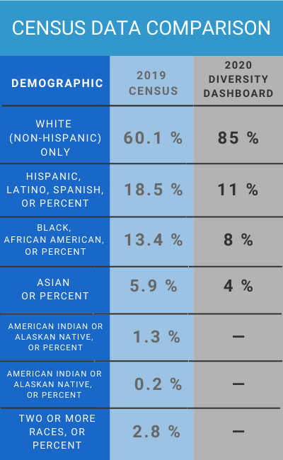 2020 Census results are yet to be made public, but here’s how government staff compares on a national level based on July 2019 data. Diversity Dashboard data also shows where local government is moving in terms of replacement rate based on age: