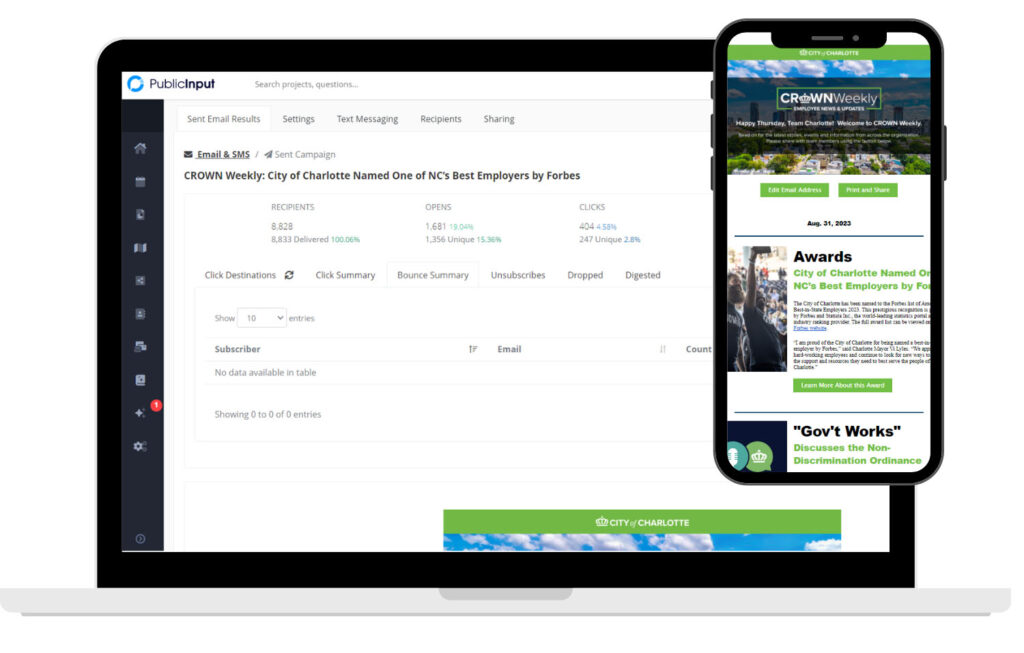 PublicInput makes outreach and engagement easy. State and local governments can expand their reach using a mix of communication channels to spread the word. Whether it be supporting emails with flyers, advertising an upcoming engagement initiative on a local news broadcast, or making use of established community ties by partnering with local organizations.