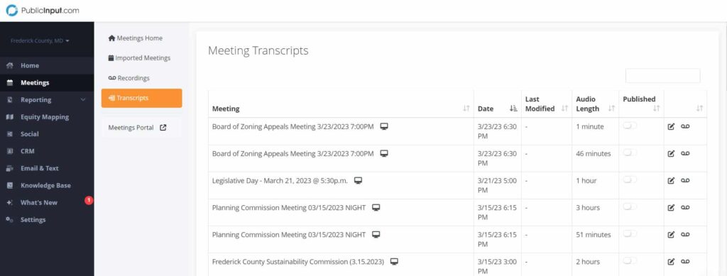 Automated PublicInput meeting transcripts helped staff capture meeting minutes for every public meeting with an option to translate and share in over 100 languages.