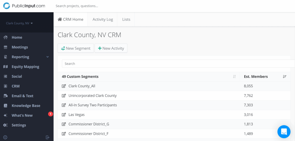 The PublicInput CRM offers Clark County, NV staff a safe and secure archival and segmentation feature that builds with each new interaction. Learn how Clark County expanded their reach and grew a database of engaged residents.