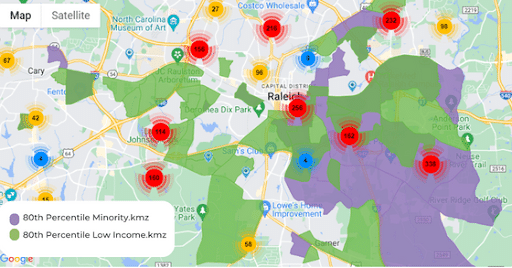 The below PublicInput equity map using Wake County, NC engagement activity is an example of how the associated geographic location as well as associated demographic variables can provide valuable context.
