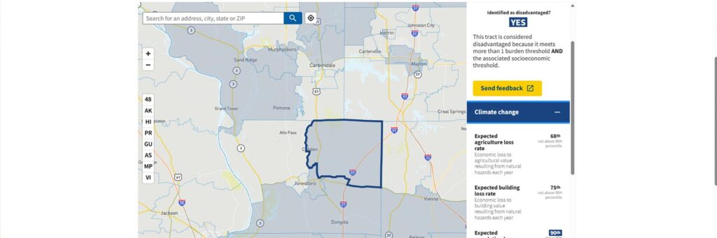 As part of this, the White House created the Climate and Economic Justice Screen Tool, or CEJST– a geospatial mapping tool that identifies disadvantaged communities that might be marginalized or overburdened by pollution and underinvestment.