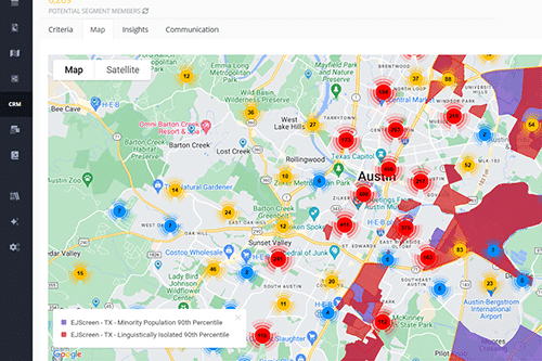 In order to achieve this, organizations must adopt a location-prioritized strategy and decide on the specific geographic “disadvantaged community index” that will serve as the foundation for analyzing effectiveness of engagement with underserved communities. They can then create a Segment in PublicInput’s CRM based on this data. Examples include…