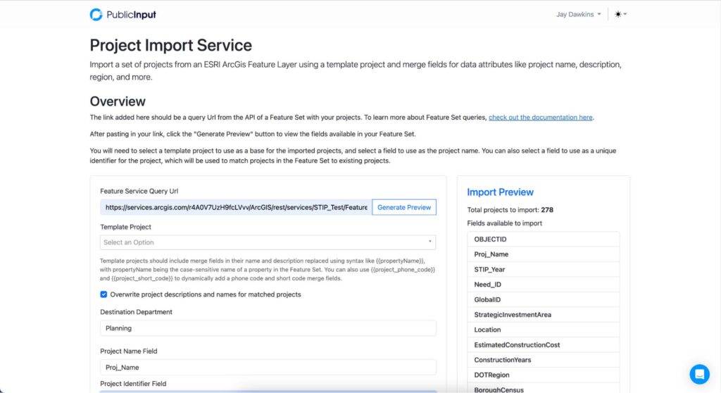 Importing hundreds of projects from ESRI to PublicInput in minutes