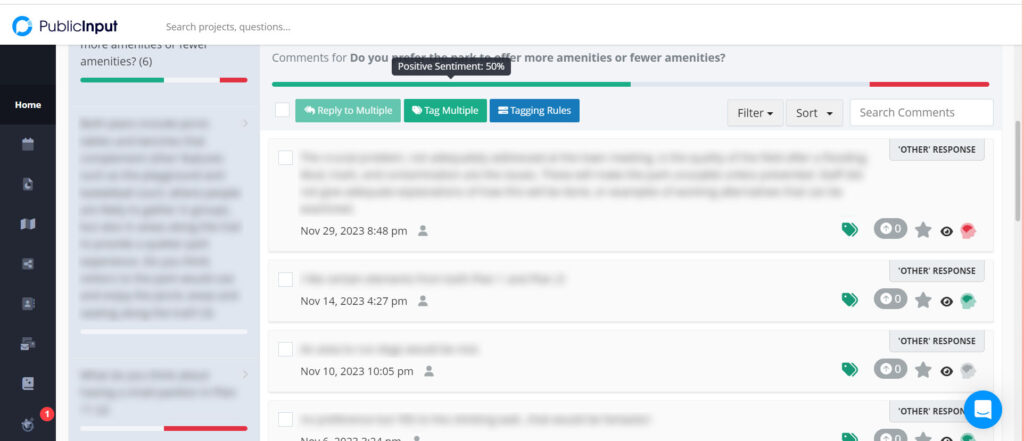 Above Image: PublicInput’s automated comment analysis uses GPT and machine learning to tag comments based recurring themes.