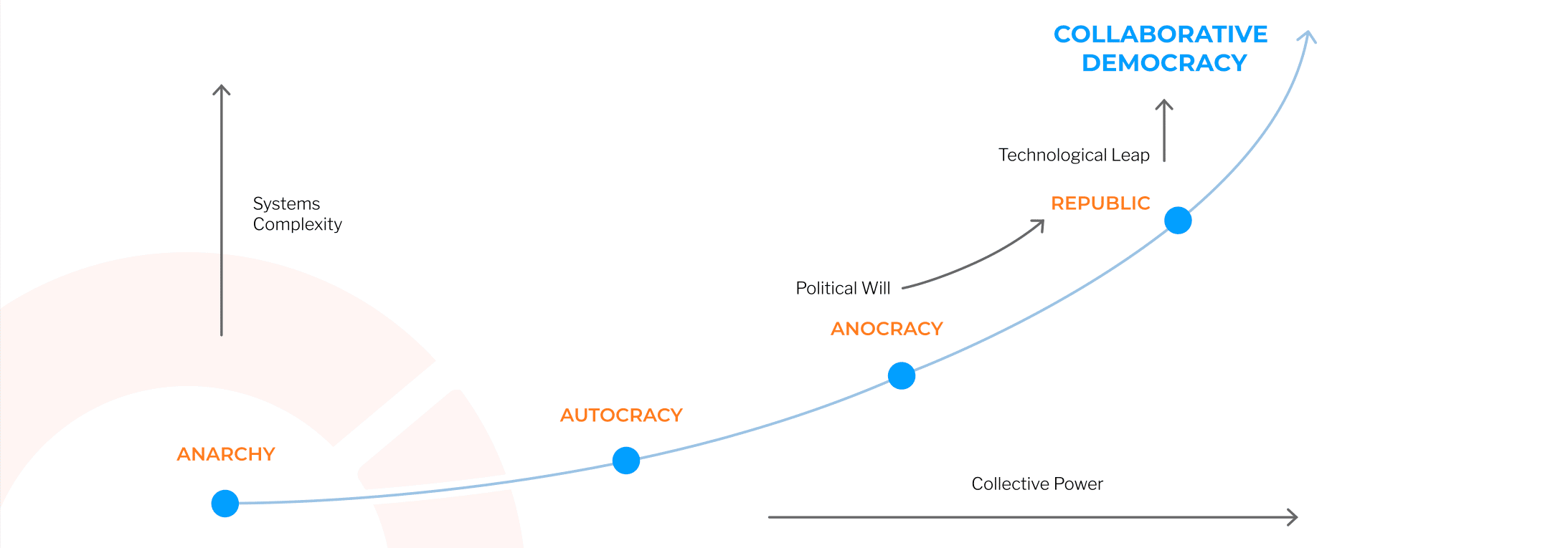 - Collaborative democracy is emerging just in time. Collaborative democracy, as the next phase in the evolution of democracy, will move forward not through more war, but rather through technological innovation.