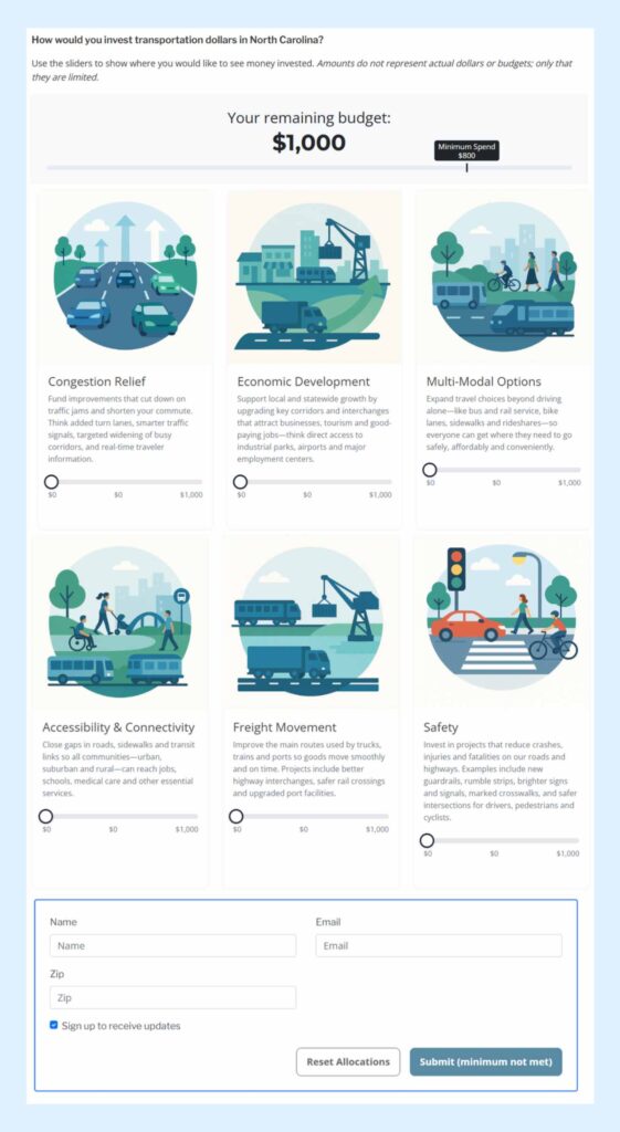 - Customize budget input tools to reflect local priorities