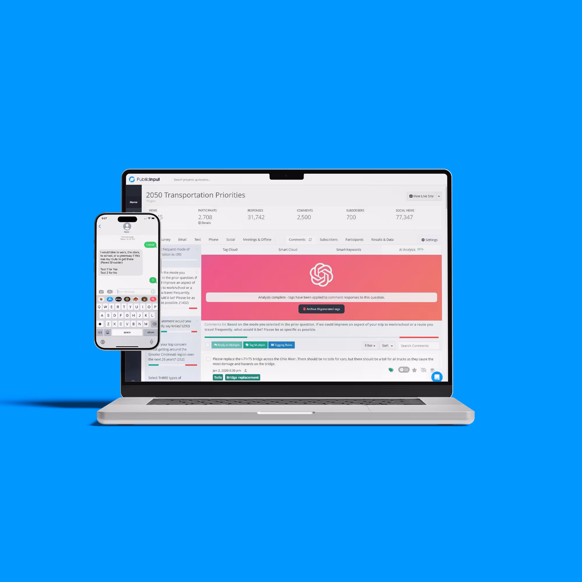 Connect with your systems of record or export what you need. PublicInput is built for easy data sharing across departments, with support from our implementation team every step of the way.