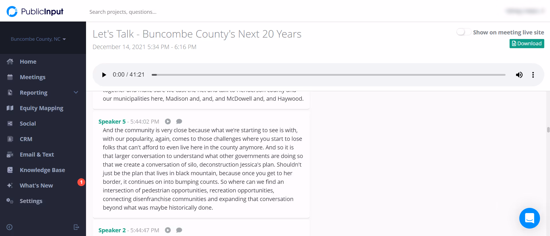 Accessibility barriers like limited broadband, language differences, disabilities, or outdated tools often go unseen but have real consequences: lower turnout, incomplete feedback, and less informed decisions. PublicInput removes these barriers with a unified platform that makes participation easy for everyone, whether online, by phone, or in person. With built-in language access, real-time translation, and live captions in over 100 languages, every voice is welcomed and counted. Hybrid meetings are seamless, with AI-powered transcription and summaries, while live polls, comments, and surveys capture actionable input in real time. Automate registration, manage logistics, and track feedback in one secure system without juggling tools or spreadsheets.