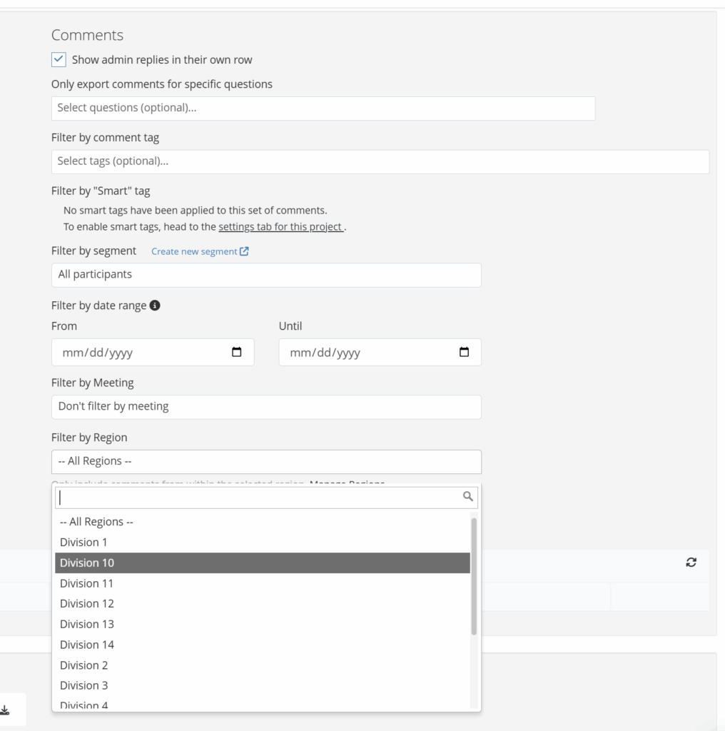 No more sifting through thousands of comments to find those relevant to a specific area. With Regions, you can now filter your map comments and export data specific to any defined geographic region.